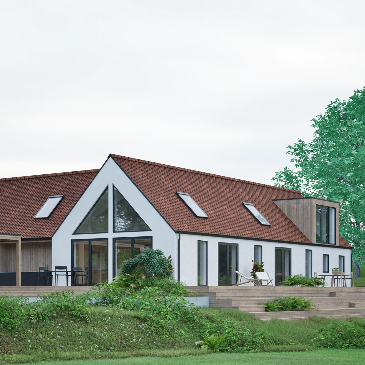 Fordelen ved at vælge et skitseforslag er blandt andet at skabe overblik. I sidder måske inde med en masse tanker og idéer til jeres kommende bolig, og det kan være svært at vurdere, hvad der er realistisk. Vi hjælper jer med at samle jeres ønsker og drømme i et konkret forslag.