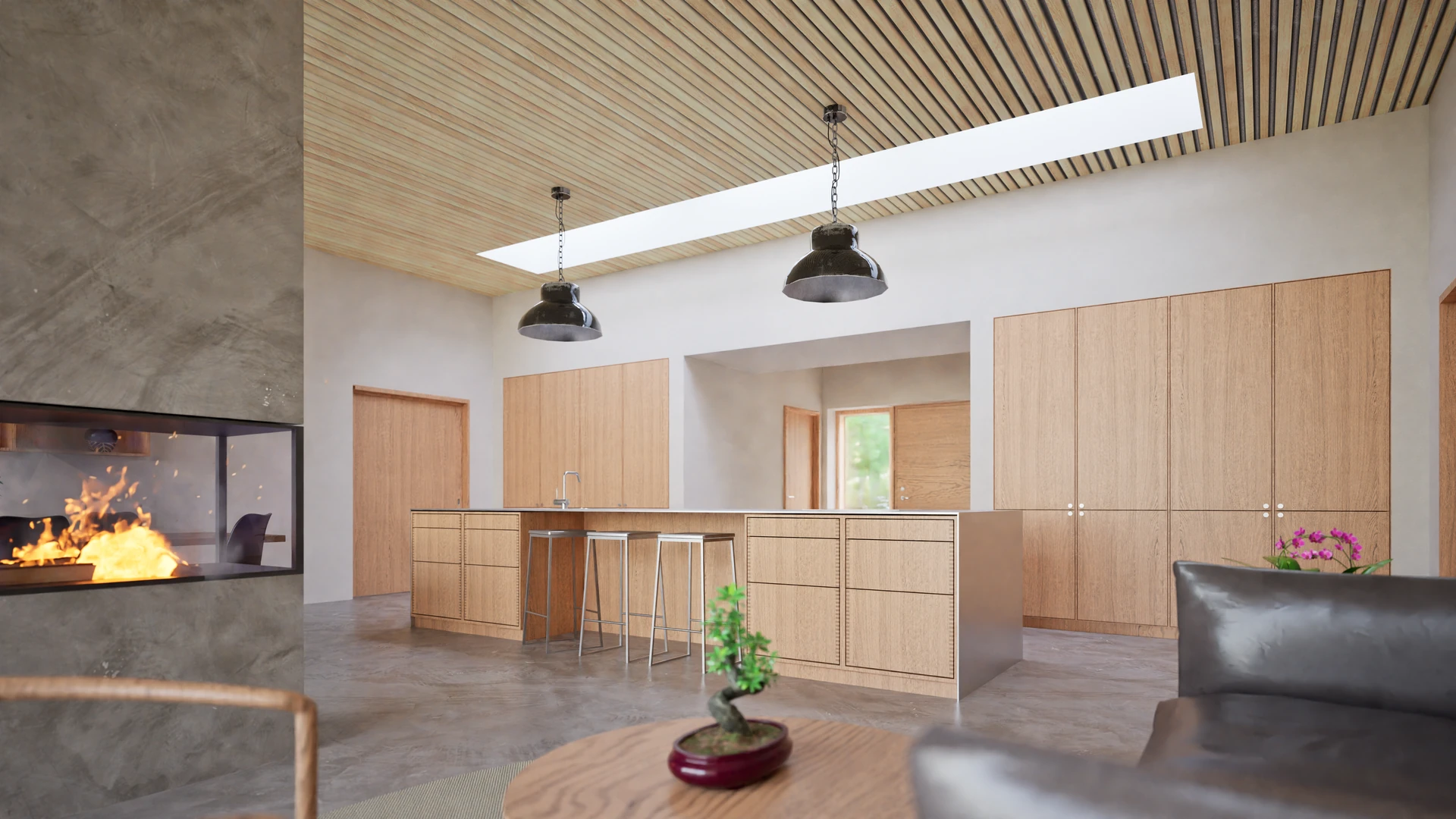 I Nordsjælland har vi tegnet et unikt refugium, der fungerer som et inspirerende fristed for fordybelse og kreativ udfoldelse. Boligen er tænkt som et samlingspunkt, hvor kunst og natur smelter sammen i en harmonisk helhed, der understøtter den kreative proces.