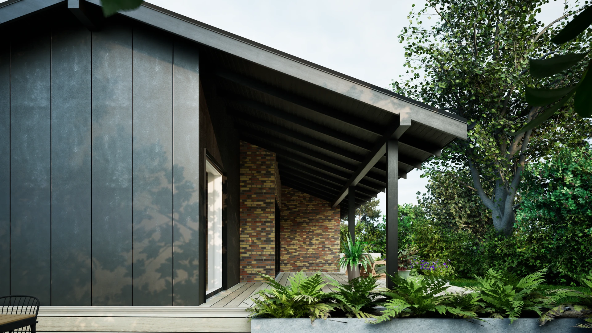 For at opfylde familiens ønske om mere plads, er denne forstadsvilla blevet udvidet med en separat voksenafdeling og et ekstra badeværelse. Tilbygningen lægger sig som en naturlig forlængelse af det eksisterende hus, hvor facaden er trukket let tilbage for at skabe et integreret, overdækket uderum.