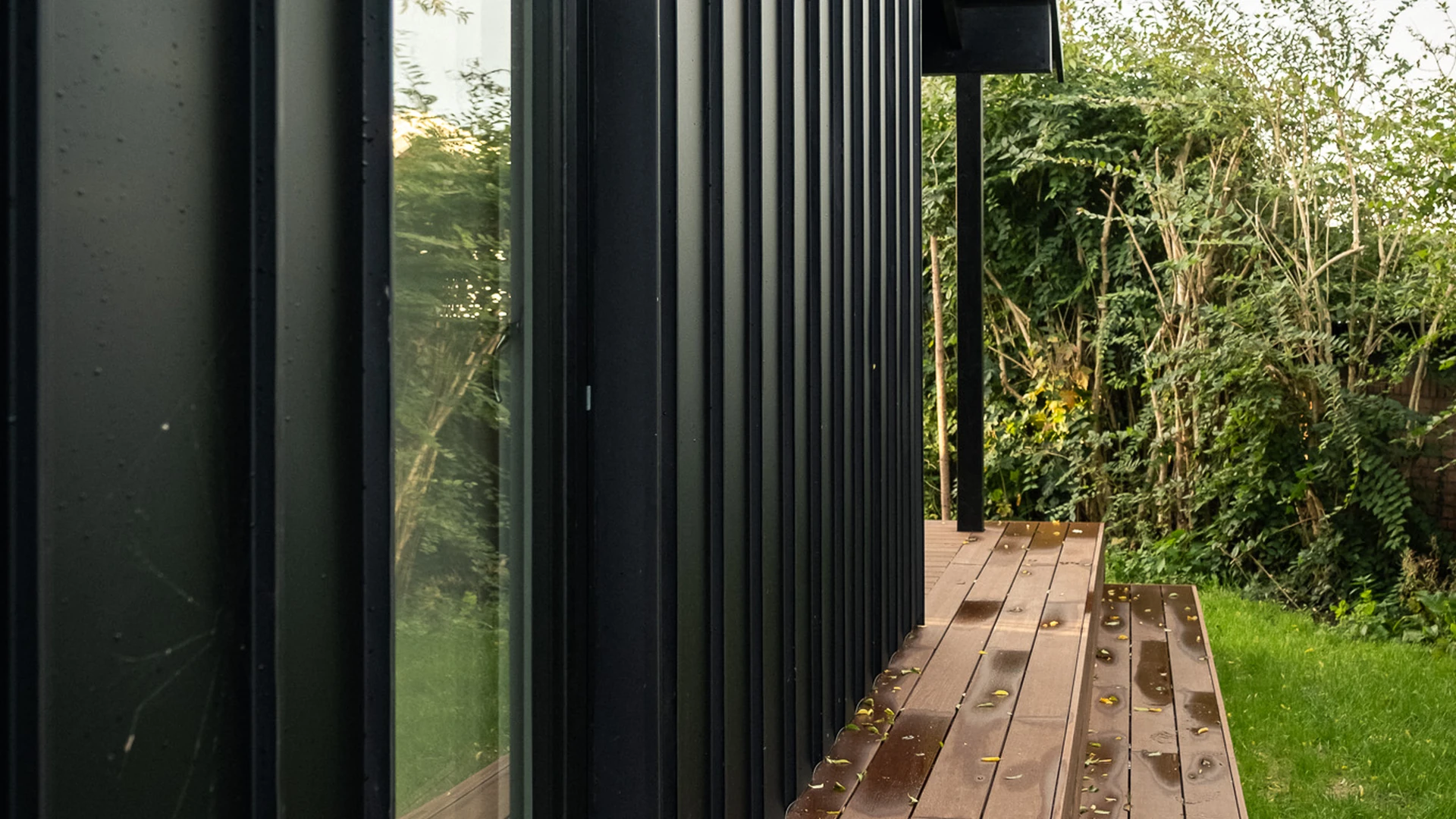 Den nye bygningskrop markerer sig elegant med en sort klikfalsfacade, der skaber en moderne kontrast til det oprindelige teglstensbyggeri. Resultatet er en funktionel udvidelse, der tilfører boligen både moderne æstetik og værdifulde kvadratmeter i harmonisk samspil med det eksisterende.