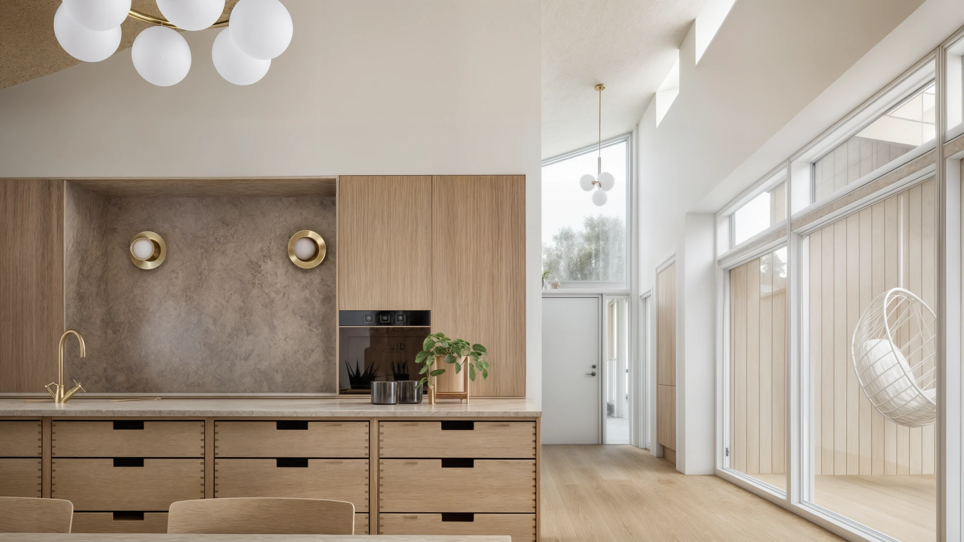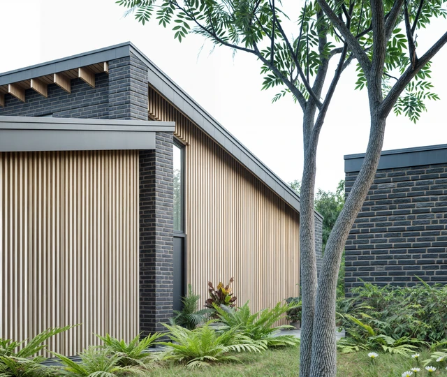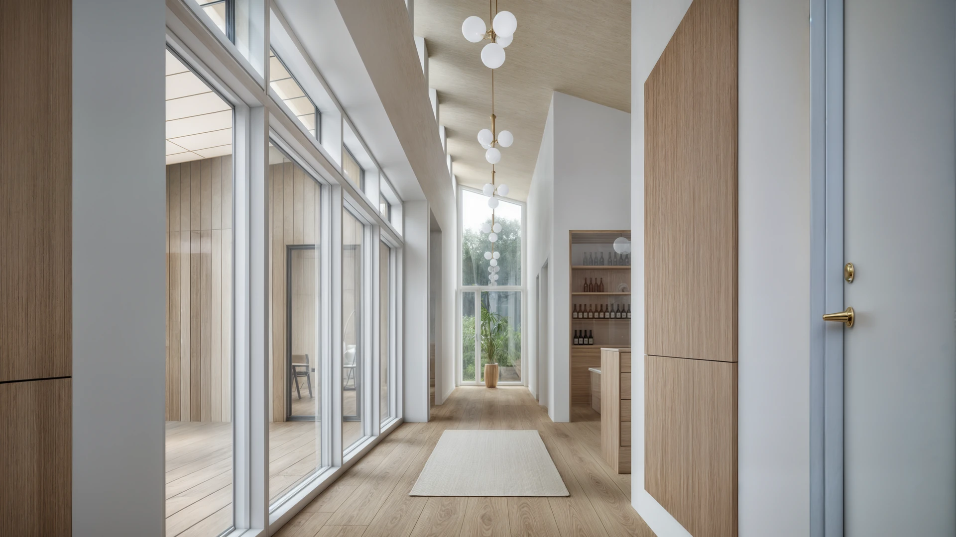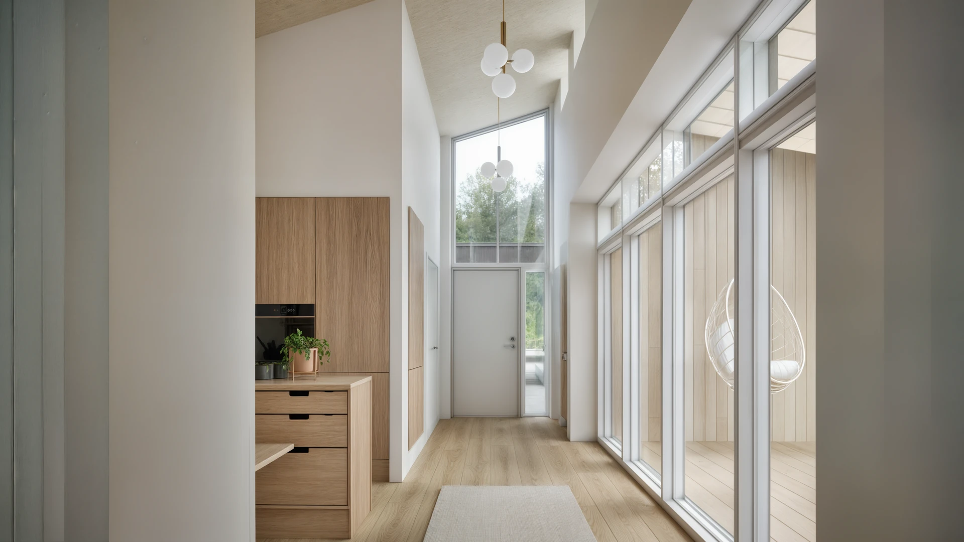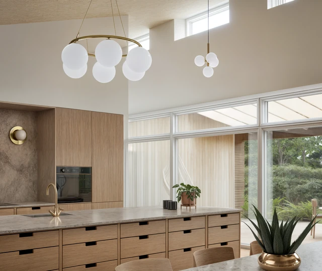 I Østjylland har vi tegnet denne familievilla med et særligt fokus på dagslys og en varm, stoflig materialitet. Store glaspartier og strategisk placerede ovenlys trækker lyset helt dybt ind i boligens hjerte og skaber en flydende overgang til den omgivende have. Indvendigt præges rummene af gennemgående, lyse egetræsflader, integrerede snedkerløsninger og en generøs loftshøjde, der tilsammen skaber en luftig og rolig atmosfære.