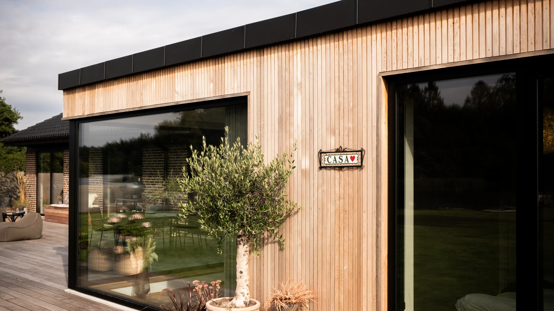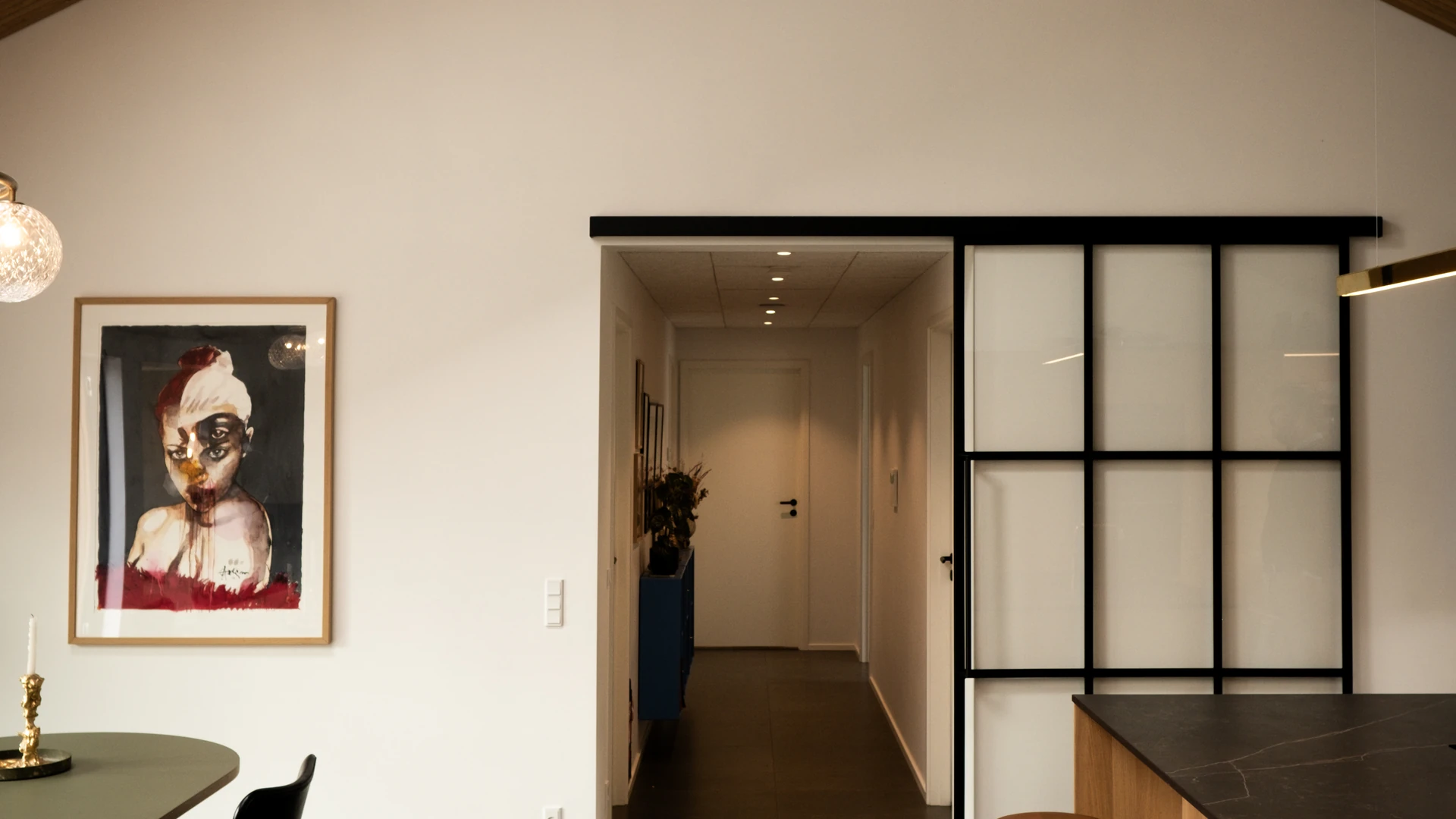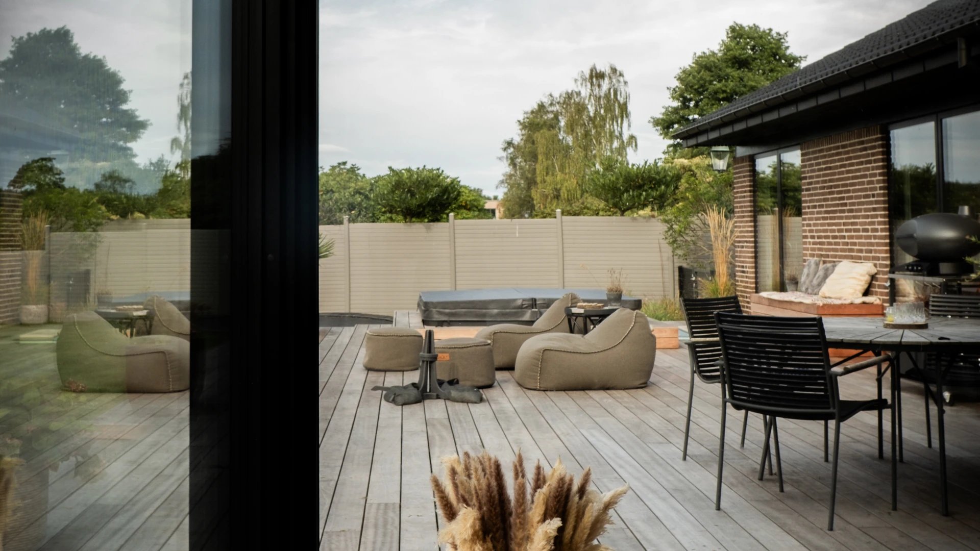 I direkte forlængelse af alrummet er etableret en ny, indbydende stue, der fungerer som bindeled til tilbygningens private forældreafdeling med eget badeværelse. Resultatet er en harmonisk bolig, hvor moderne arkitektur og funktionelle rumforløb sikrer, at familien kan nyde både samvær og de unikke naturoplevelser, som grundens placering tilbyder.