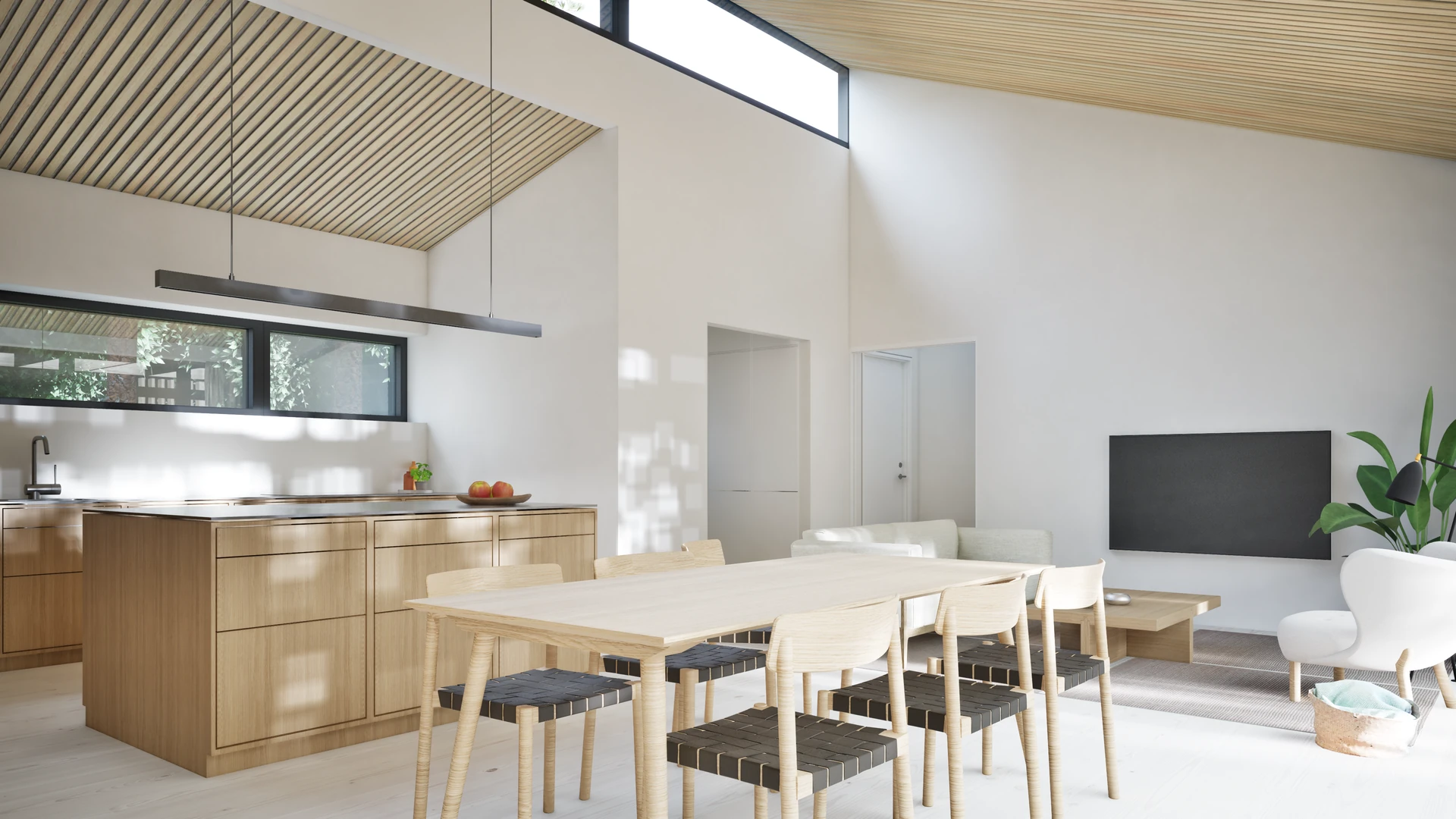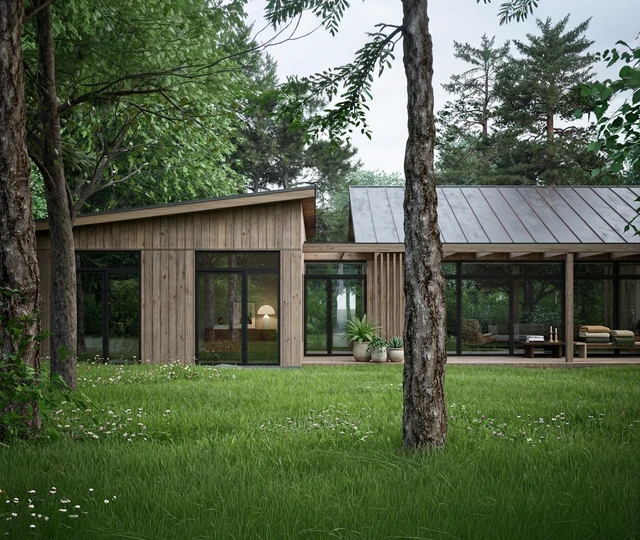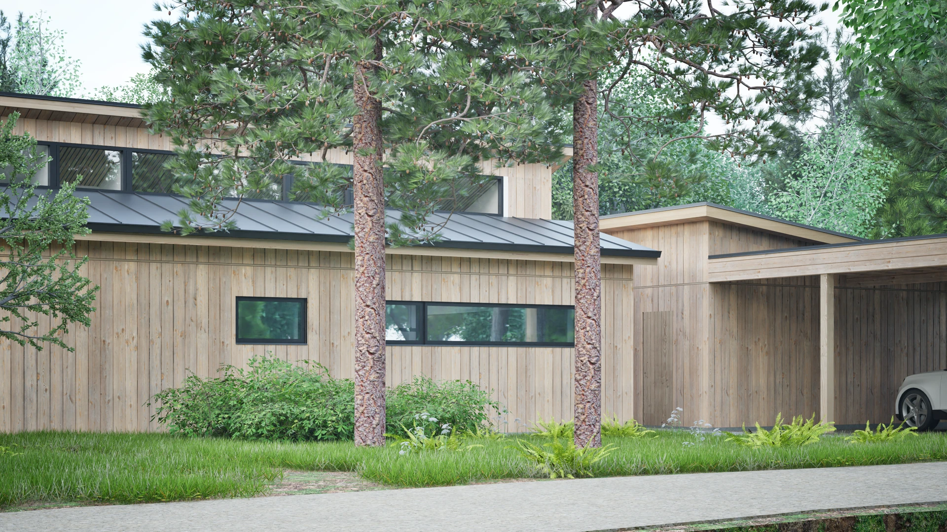 Dette projekt i Østjylland forener minimalistisk nordisk arkitektur med den omgivende have. Boligen, som oprindeligt var opført som fritidshus, har fået en overhaling både inde og ude, for at skabe en moderne og funktionel bolig, som lever op til husets fulde potentiale. Huset har fået en ny, smuk ubehandlet træfacade, som spiller flot sammen med et moderne ståltag. Store glaspartier og asymmetriske taglinjer sikrer et optimalt lysindfald og en flydende overgang mellem inde og ude.