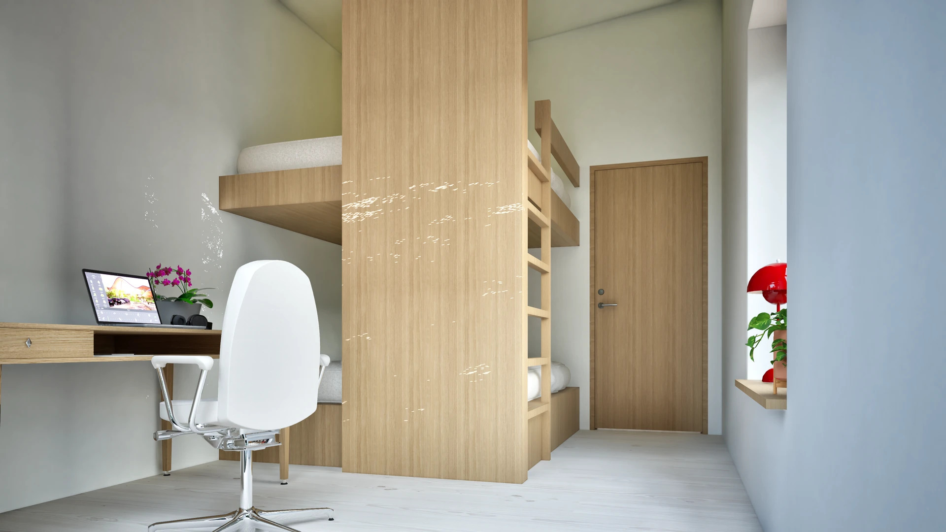 Interiøret præges af varme naturmaterialer, herunder egetræskøkken, trælofter og hyggelige kroge for både børn og voksne.