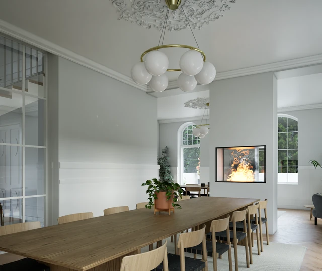 Resultatet er en harmonisk forening af fortid og nutid, hvor klassiske detaljer som de hvælvede lofter og facadens fine proportioner er ført tilbage til deres storhedstid. Ved brug af autentiske materialer og solidt håndværk har vi sikret, at husets historiske arv lever videre i en moderne kontekst.