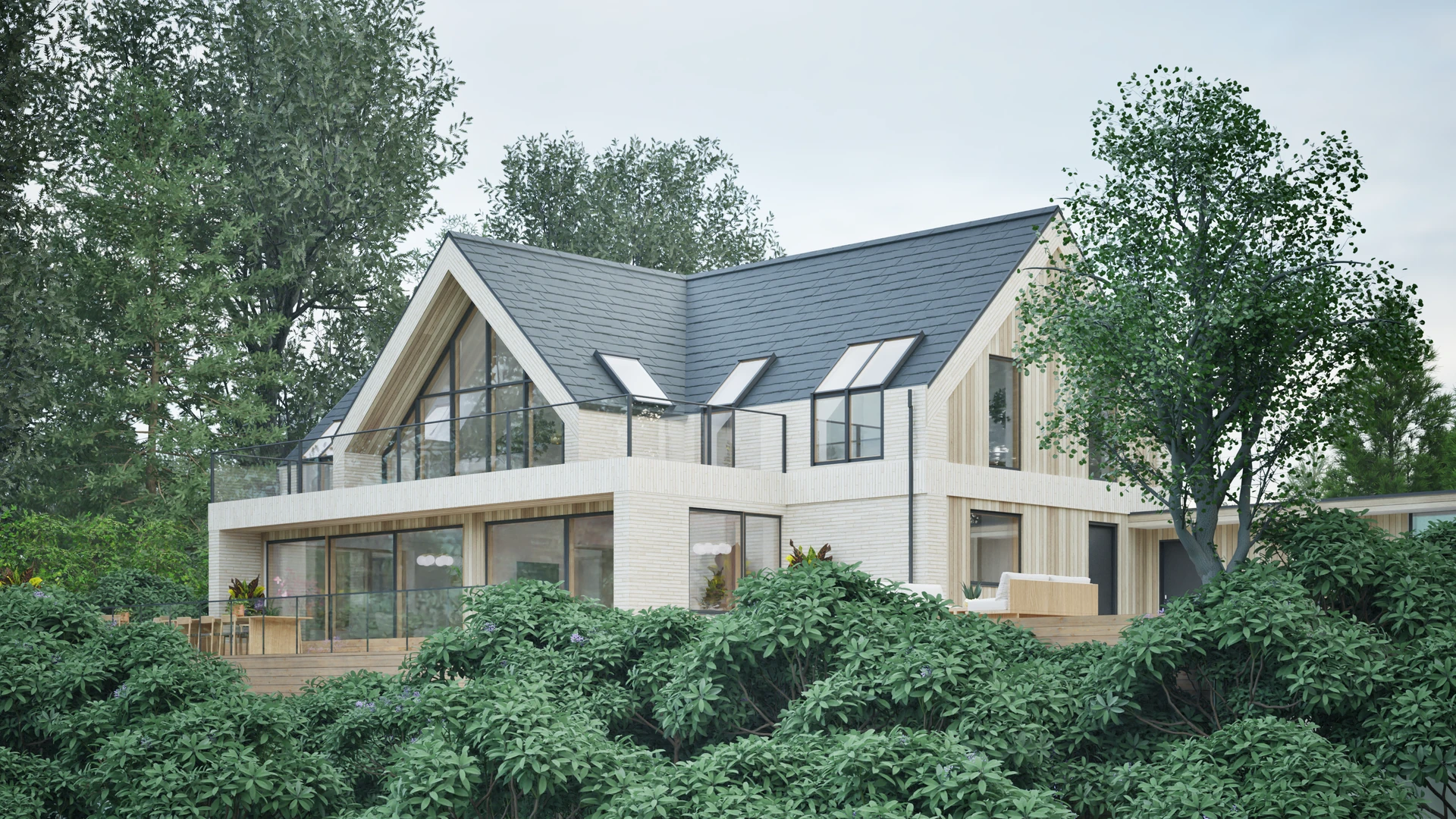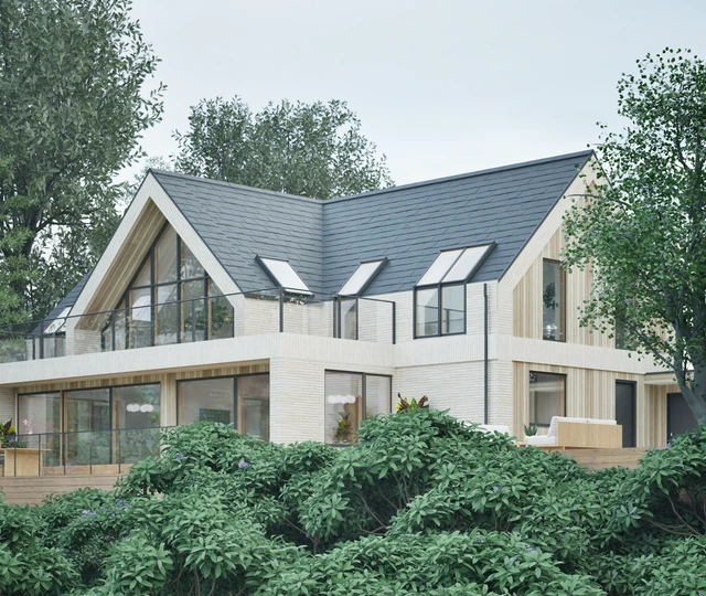 Ved Silkeborgsøerne har vi tegnet denne imponerende villa i første række til vandet. Boligen er skræddersyet til grundens bakkede landskab med lyse opholdsrum og store, sydvendte terrasser, der maksimerer udsigten over Borresø. Facadens varierede murværk skaber et levende spil, mens interiøret er præget af kompromisløse detaljer som specialdesignede siddenicher, indbyggede møbler og en markant hall. Resultatet er et unikt hjem, hvor arkitektonisk kvalitet og eksklusive materialer forenes med de naturskønne omgivelser i en harmonisk helhed.