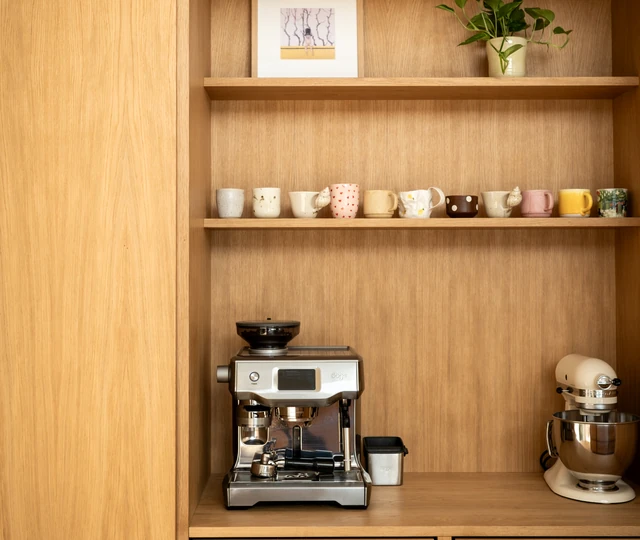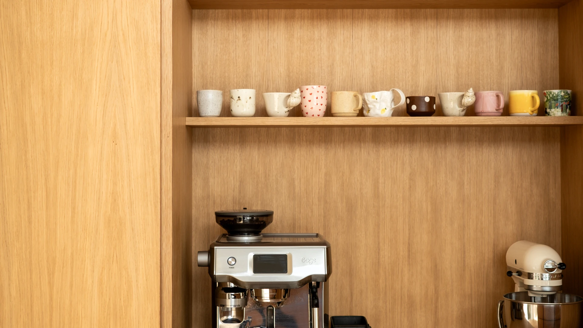 Indvendigt er boligen disponeret, så søudsigten kan nydes fra alle leverum – med kig til vandet allerede fra entréen. Bygningens forskydning opdeler naturligt køkken-alrum og stue, mens kælderen rummer en eksklusiv forældreafdeling og multirum med direkte haveudgang.