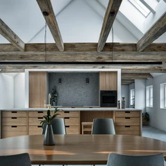 Renovering handler lige så meget om at bevare som at forandre.Vi arbejder ofte med eksisterende materialer, som har en særlig karakter: murværk, træbjælker, tegl, originale vinduesdetaljer eller konstruktioner med håndværksmæssig kvalitet. Når disse elementer integreres i renoveringen, skaber det en taktil og autentisk helhed.